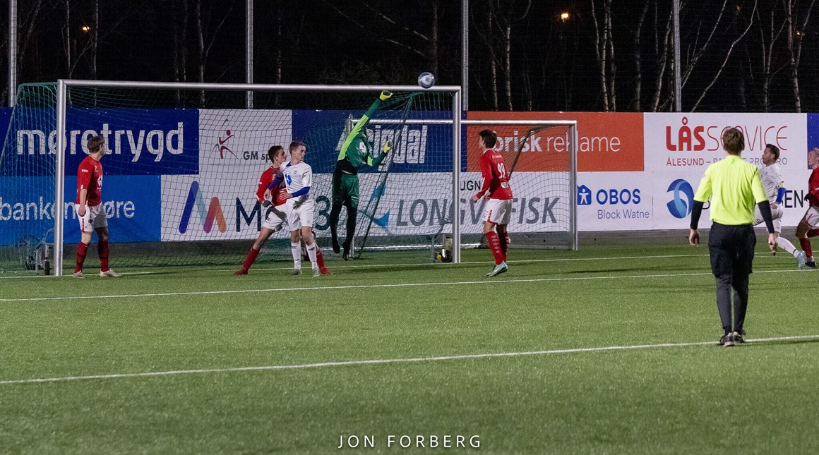 Vetle Mathiesen timer perfekt og får et strålende gjennomspill i bakrom. Alene med keeper Henrik Hansen roer han flott ned og banker den mot lengste hjørne. Den meget gode og rutinerte keeperen, med bl.a 84 seniorkamper for Spjelkavik, gjør et tigersprang og fister ballen til side. Der kommer nykommer Markus Hallaråker men klarer dessverre ikke sette den i mål fra skrå vinkel.
