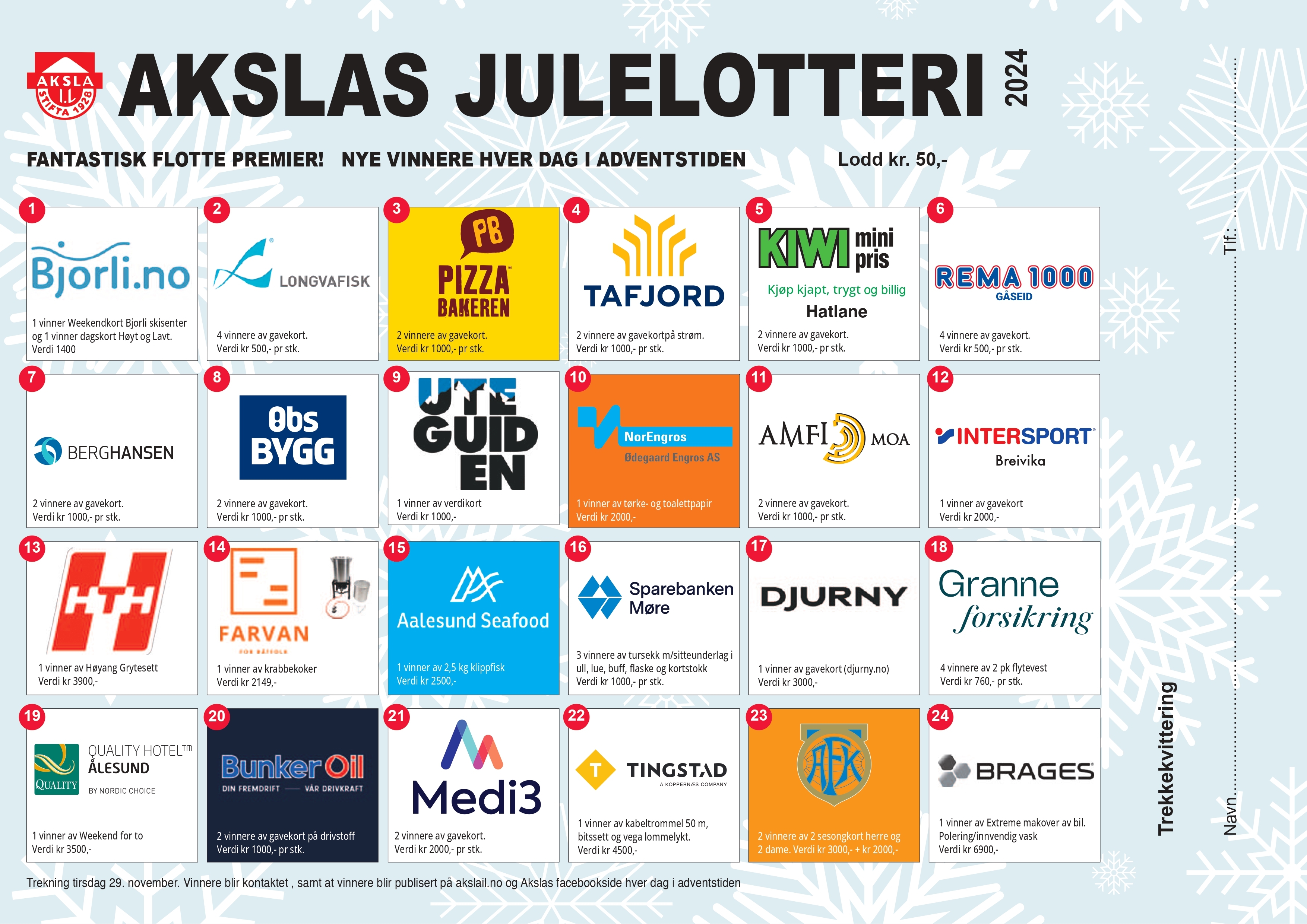 "Aksla-lotteriet" er en julekalender hvor man hver dag fra 1. - 24. desember får mulighet til å vinne flotte premier.