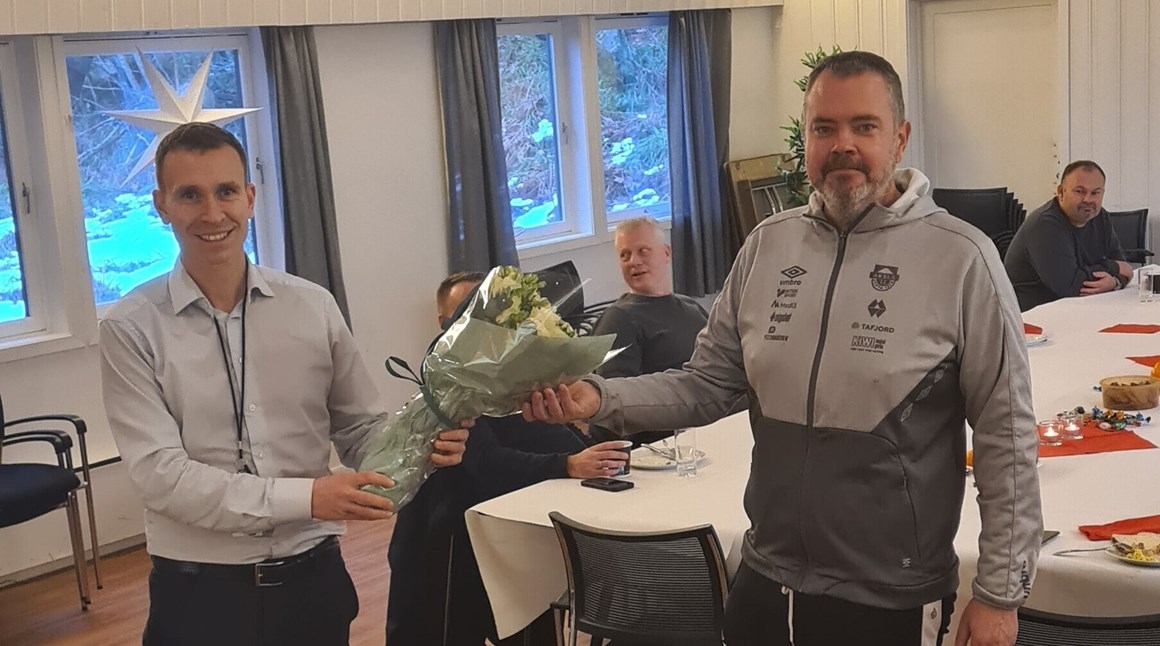 Flere tillitsvalgte fra anlegg, håndball og fotball dukket opp og hadde det hyggelig sammen. Phillip Lied Søvik fra vår samfunssponsor Sparebanken Møre takket for invitasjonen og overrakte blomster til daglig leder i Aksla IL Sindre Johannessen